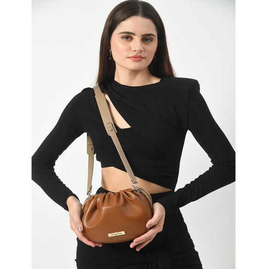 Angeline's Royal Maroon & Brown Cross Body Sling Bag